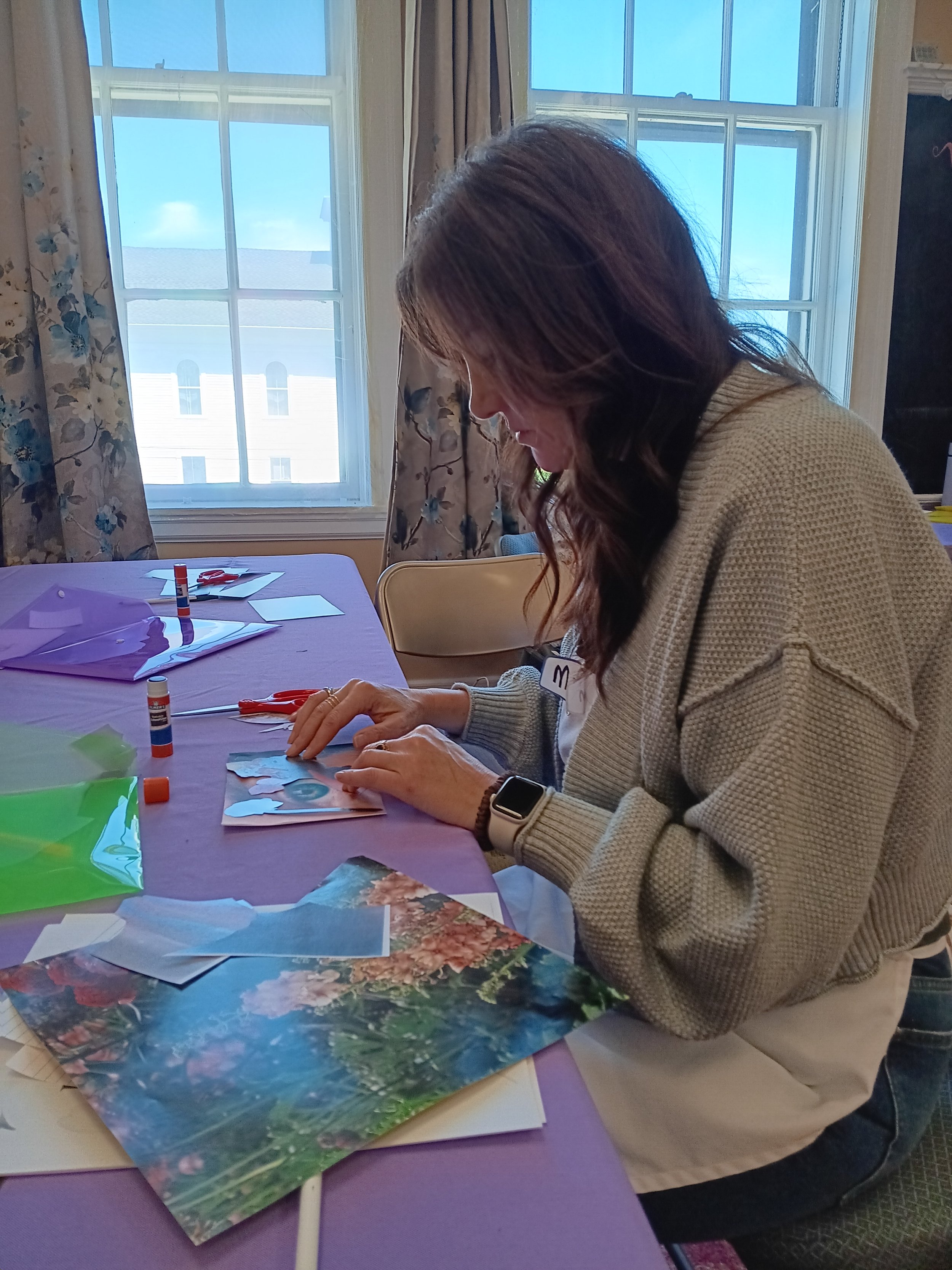 Sessions may take the form of one-time workshops, short series, or ongoing offerings, and often center on collage, guided reflection, and related expressive arts practices. These experiences can be offered one-on-one or in collaboration with organizations.
